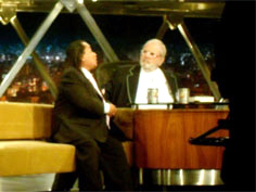 Mas o clima pegou fogo mesmo quando as suas fotos semi-nuas foram mostradas no telão. Jô caiu na cadeira e disse “poucas coisas me deixaram na vida sem palavras.” A platéia, o quinteto e o próprio convidado fizeram silêncio absoluto. Jô brincou com o poeta perguntando se ele tinha pagado o vigilante para tirar as fotos, falou de sua relação com a escritora Hilda Hilst e deu um depoimento pessoal sobre a sua relação com a escritora paulista, mas ainda impressionado com as fotos, não deixou de exibir a foto do poeta na época de coroinha na Catedral Metropolitana.